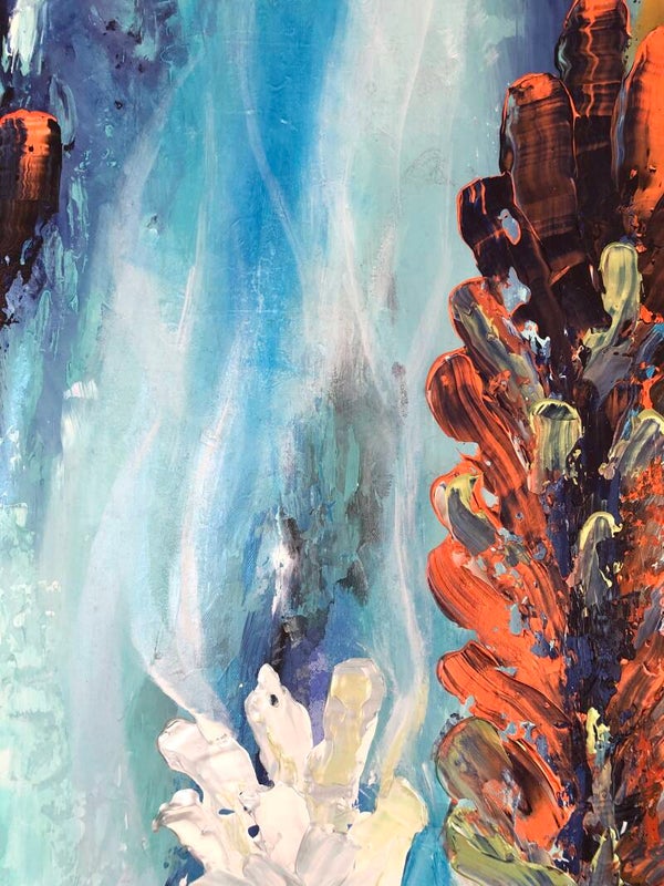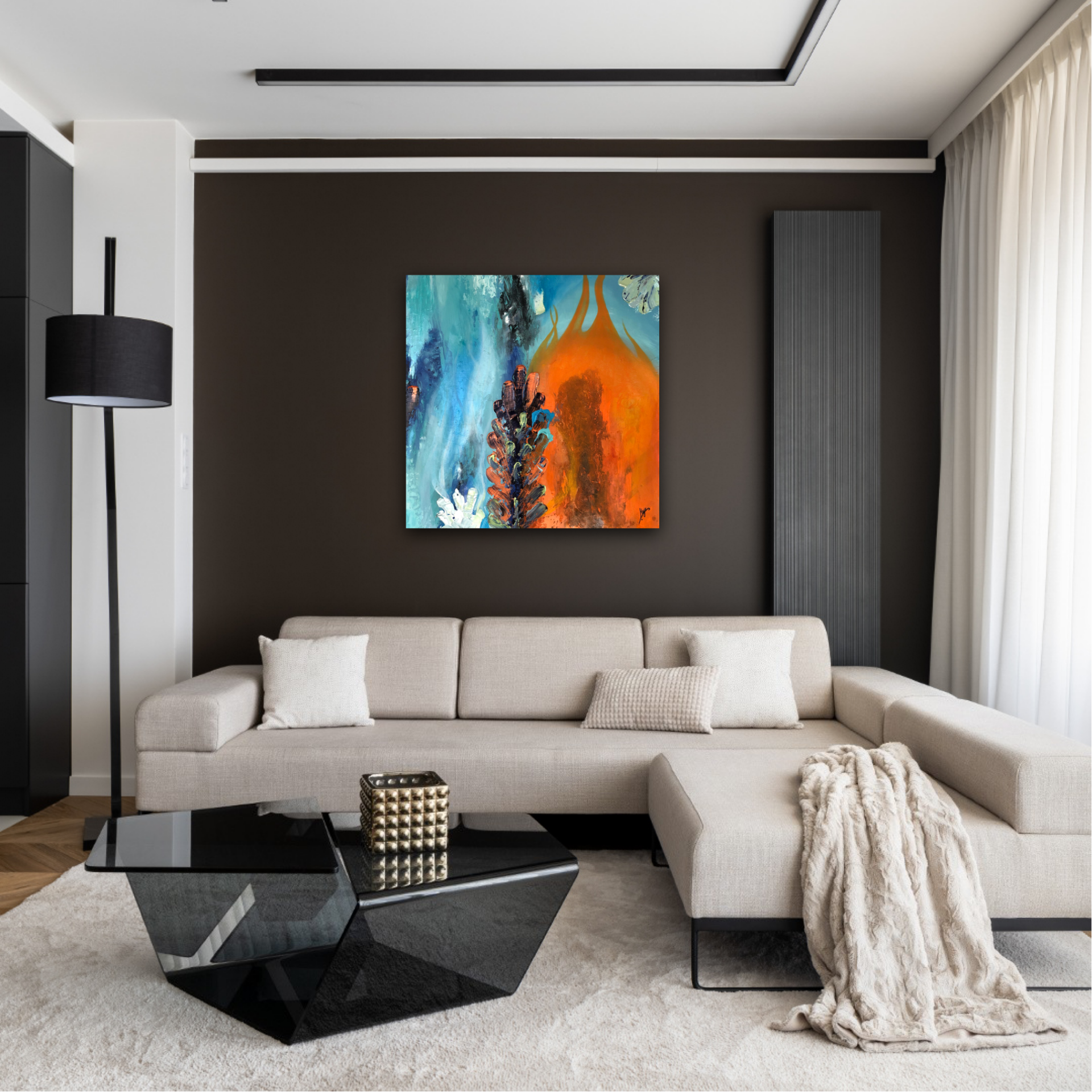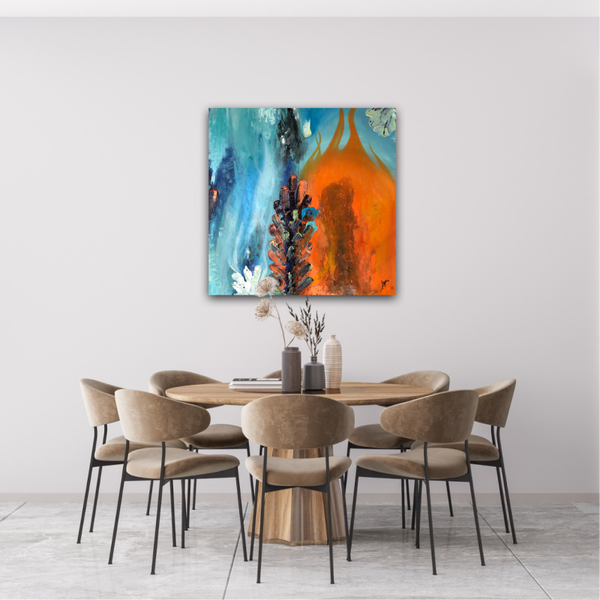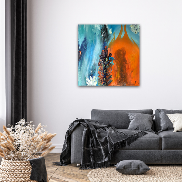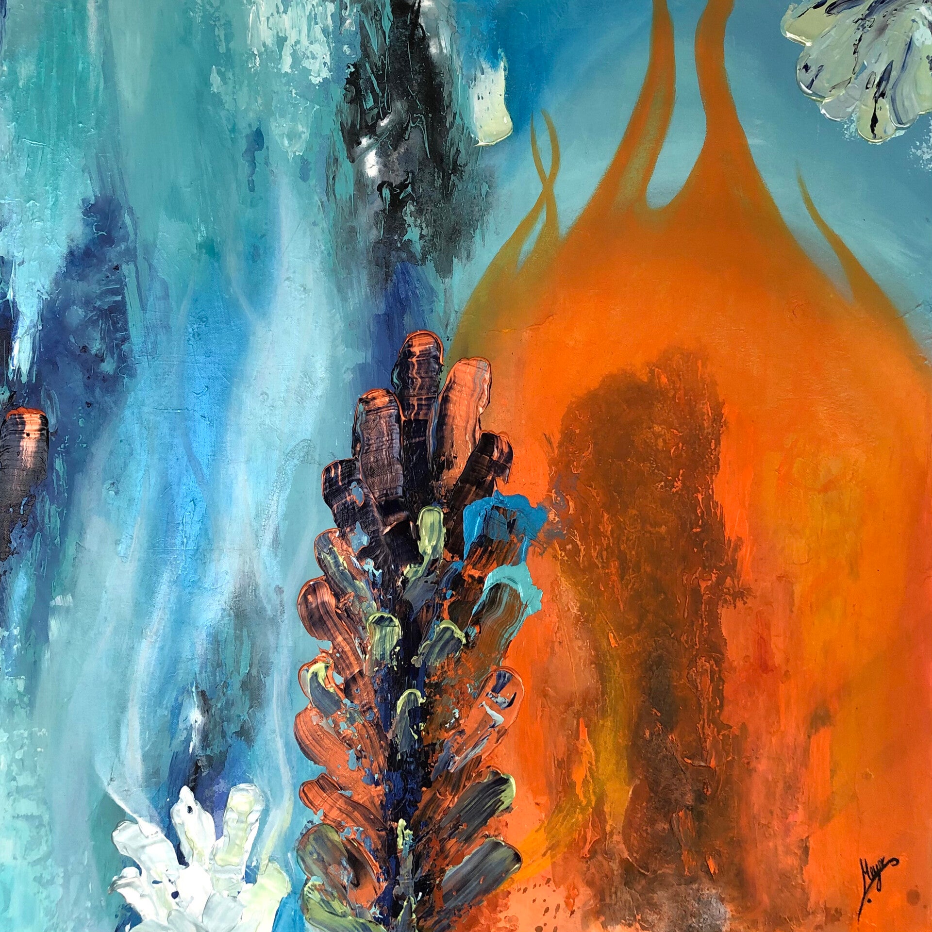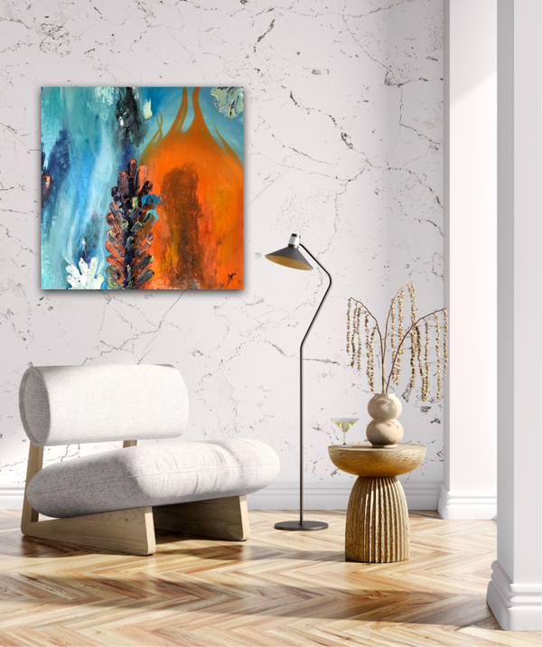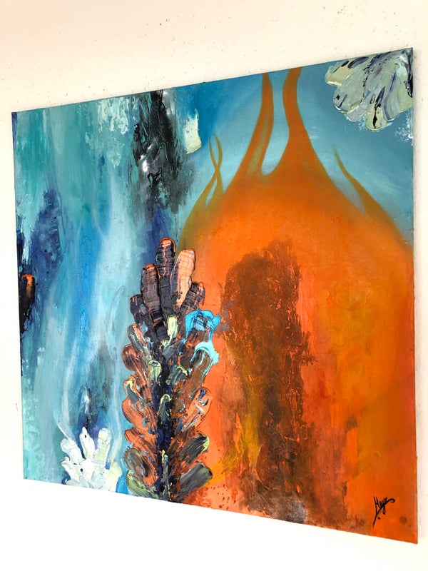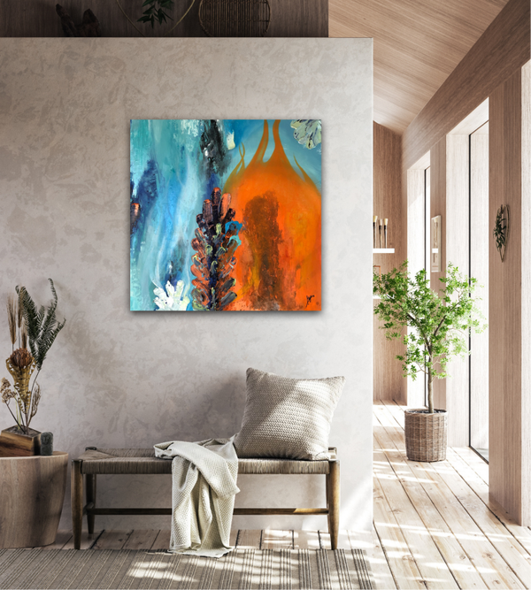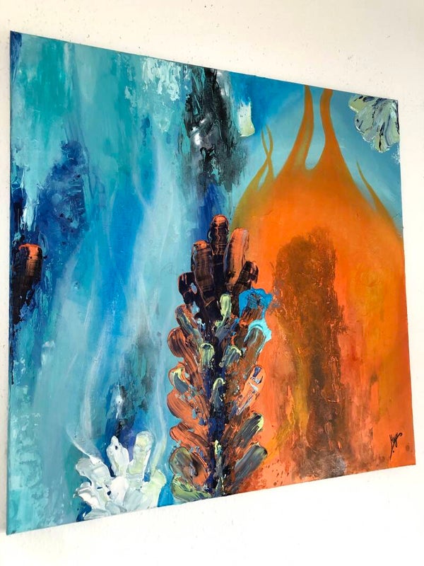 "Ruf der Gezeiten" vereint zwei Gegensätze miteinander - Feuer und Wasser. Es zeigt die Harmonie zwischen den Beiden und strahlt eine enorme Kraft aus. Das Kunstwerk erinnert mich daran, dass alles im Leben zu seiner Zeit kommt, dass wir die Dinge annehmen und unsere Gefühle zulassen müssen. Wir sollten lernen auf das Leben zu vertrauen. Nur so wird es uns gelingen, unsere innere Mitte zu finden. "Ruf der Gezeiten" ist für mich eine Hommage an das Leben und die Höhen und Tiefen die es mit sich bringt.