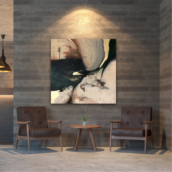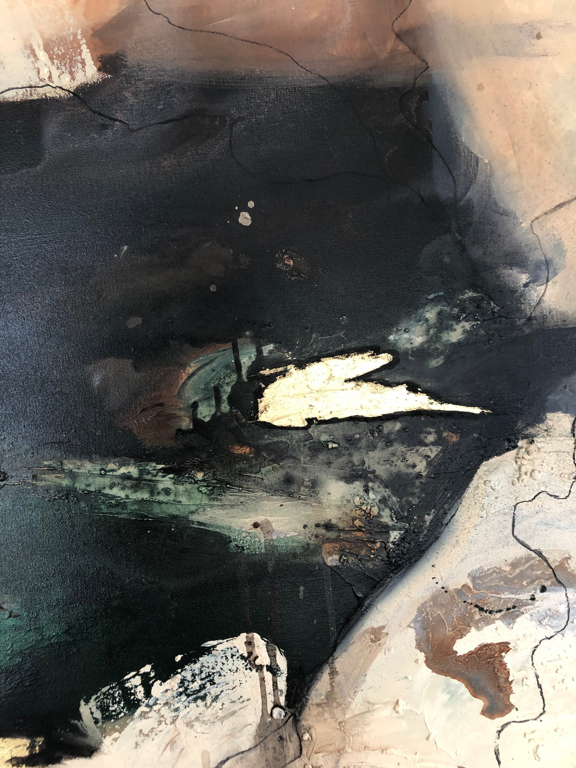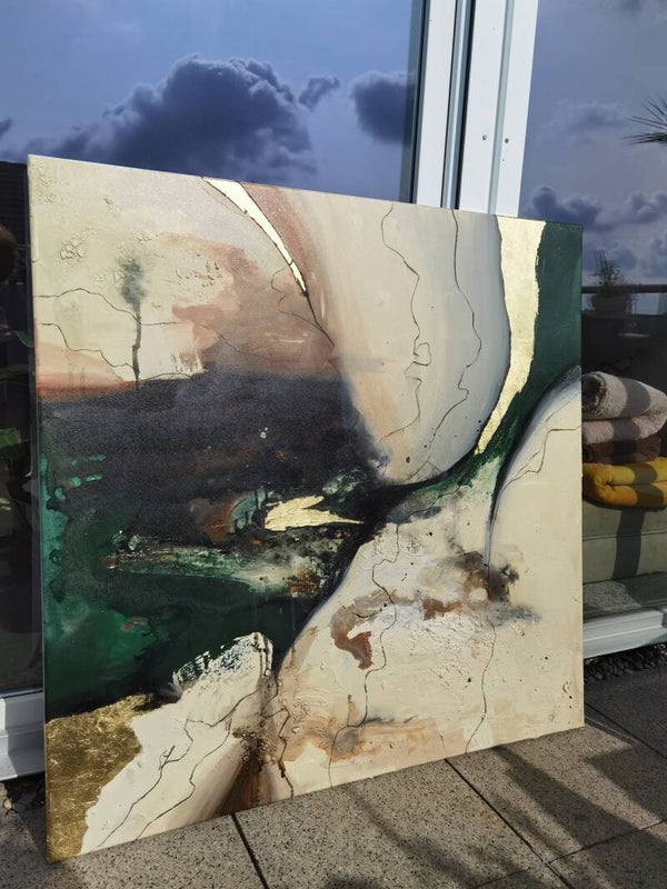 Das dunkle Grün des Kunstwerks verwandelt sich je nach Lichteinfall in ein tiefes Schwarz.