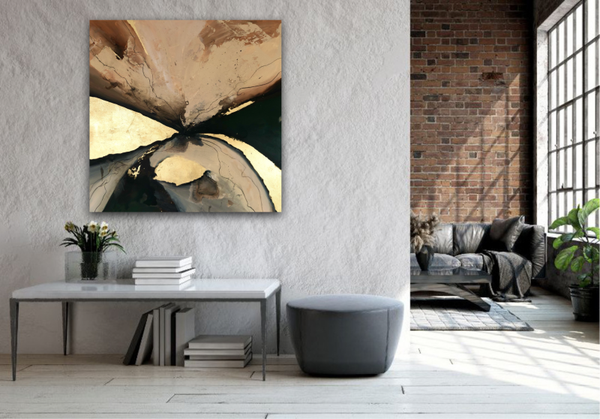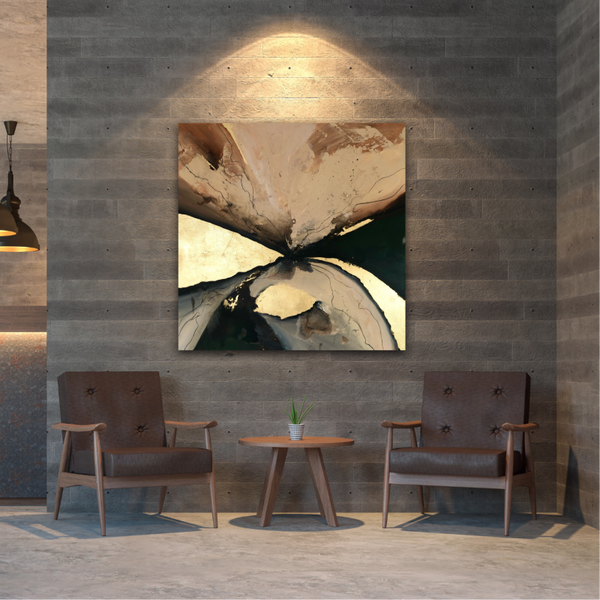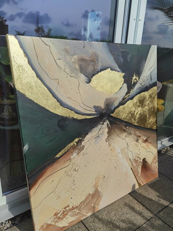 Das dunkle Grün des Kunstwerks verwandelt sich je nach Lichteinfall in ein tiefes Schwarz.