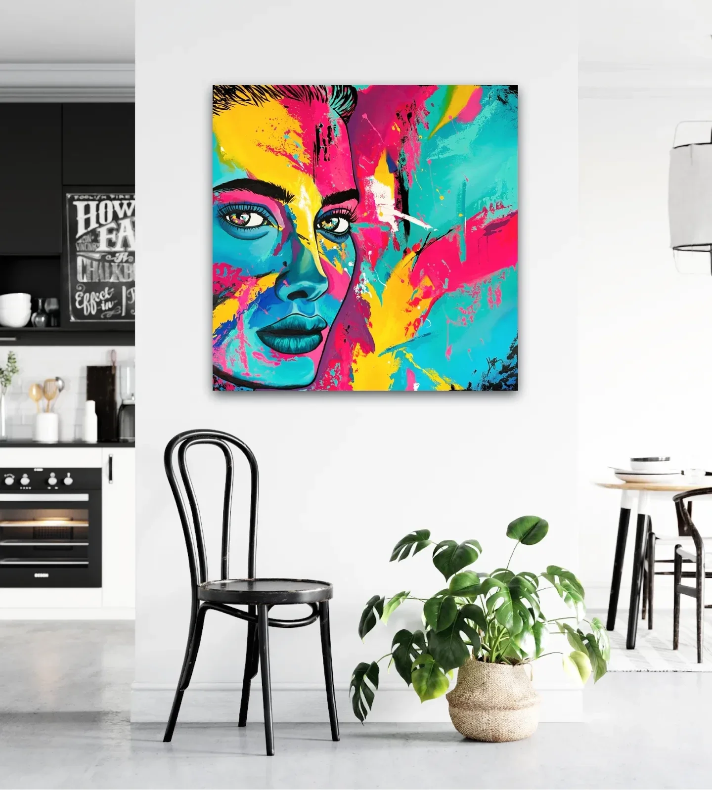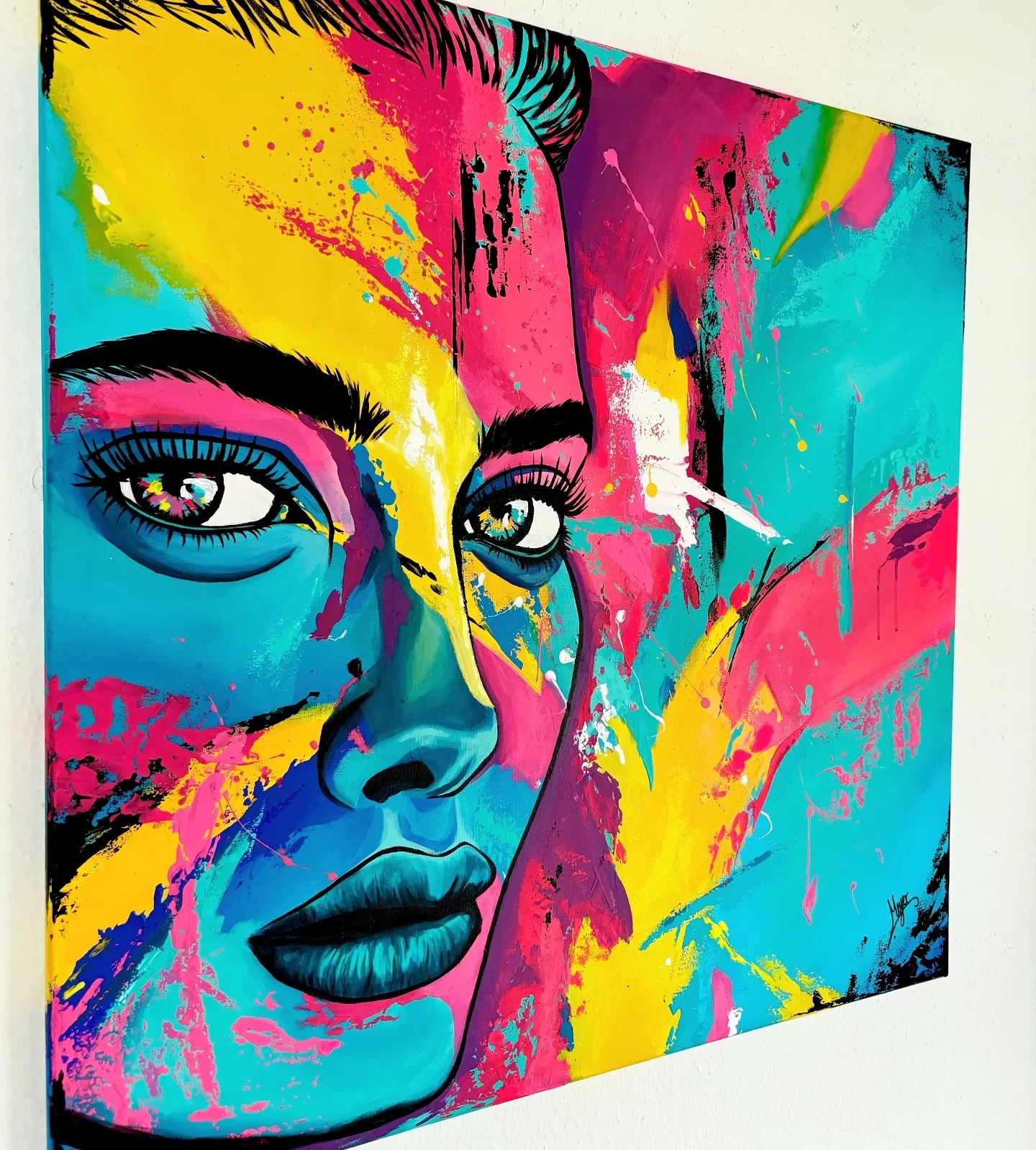 "Dieses Werk entstand in den letzten Tagen meiner Schwangerschaft und verkörpert die Stärke und Belastbarkeit, die uns Frauen innewohnt. Es erzählt von den Herausforderungen und den unglaublichen Fähigkeiten, die unser Körper während dieser Zeit entwickelt. "Resilience" erinnert daran, dass jede Herausforderung mit Farbe und Leben angenommen werden kann und feiert die Kraft, die in uns allen steckt. "Resilience" ist ein halb-abstraktes Porträt, das mit lebendigen, ausdrucksstarken Acrylfarben gestaltet wurde. Die kraftvollen Farbexplosionen symbolisieren die resiliente Lebenskraft und Widerstandsfähigkeit von uns Frauen. Verschmelzende, helle Farbtöne füllen den Raum mit einer positiven und inspirierenden Energie."