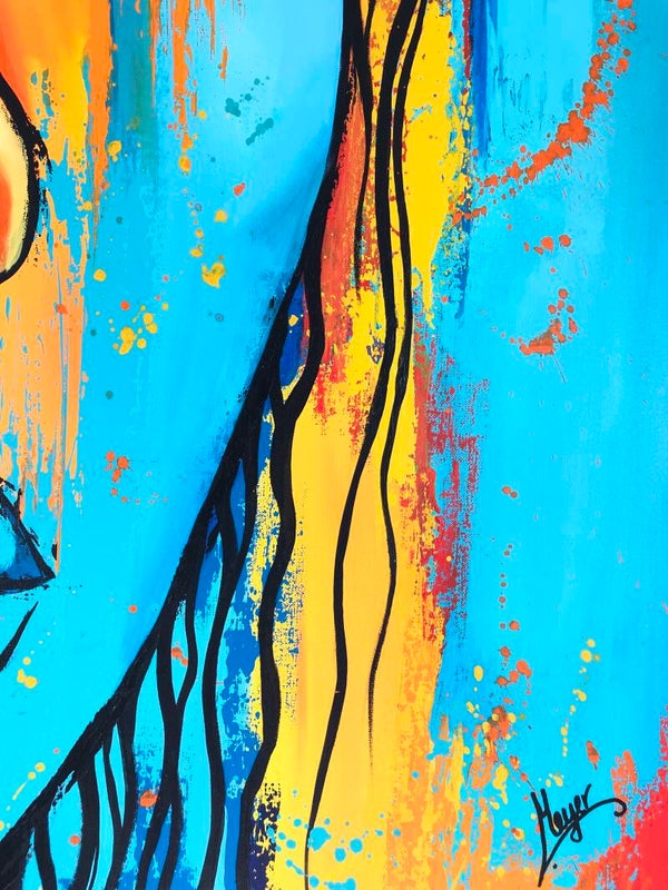 Während ich malte, flossen meine Ängste und Sorgen in das Bild ein – die Unsicherheit darüber, was auf mich zukommen würde, sowie die Sehnsucht, einen kleinen Teil meines alten Ichs wiederzufinden. Aber auch Vorfreude, dieses Kribbeln, das Gefühl, kurz vor einem großen, neuen Abenteuer zu stehen. Die leuchtenden Farben und die Kontraste im Bild spiegeln genau diese Mischung aus Spannung und Hoffnung wider.