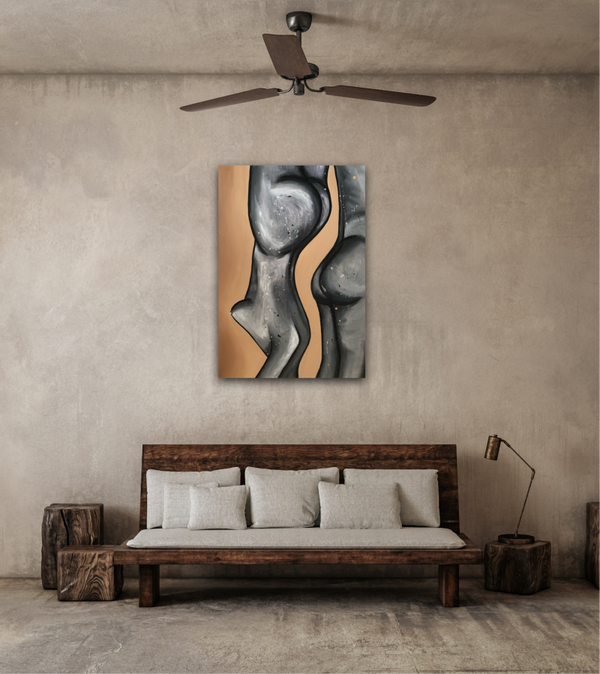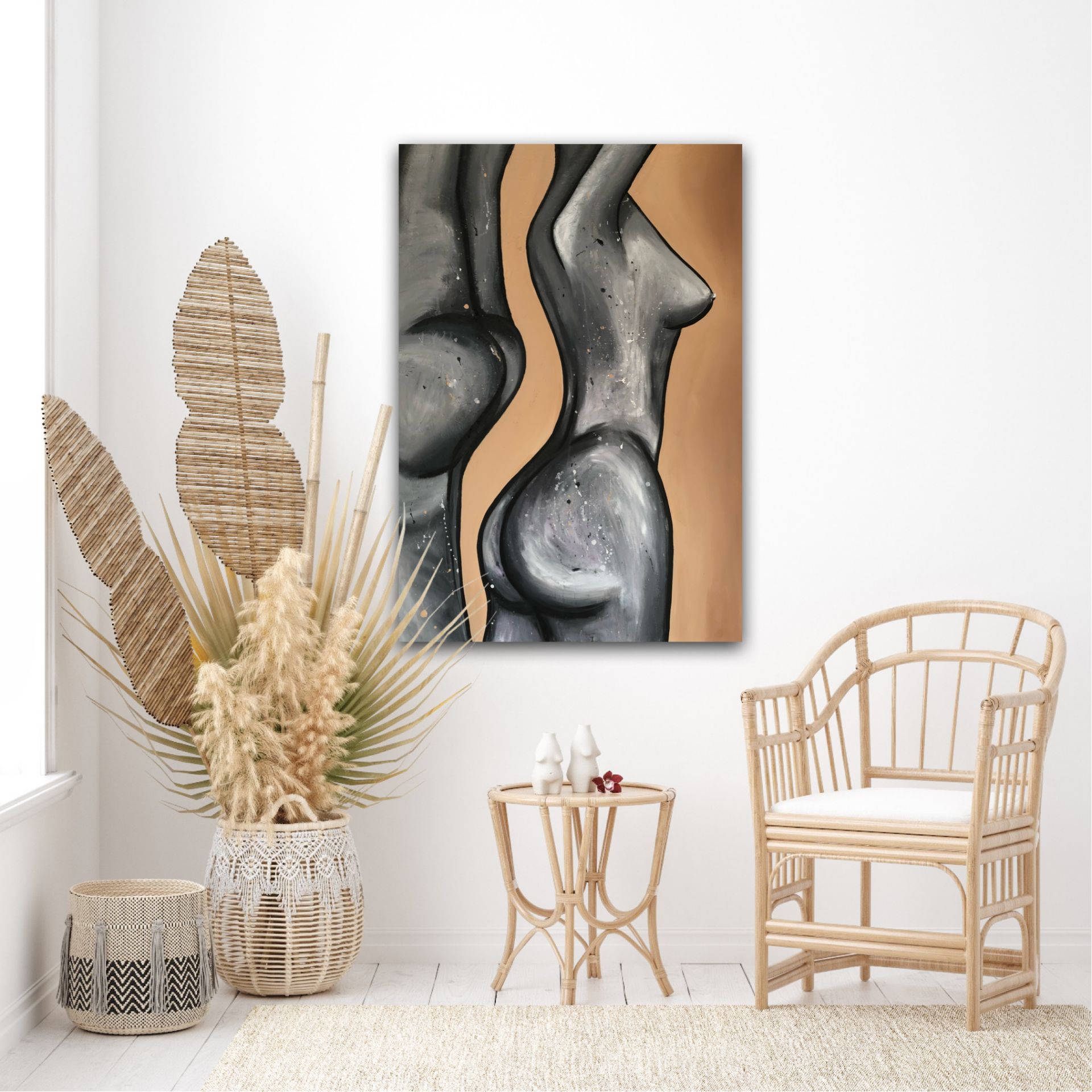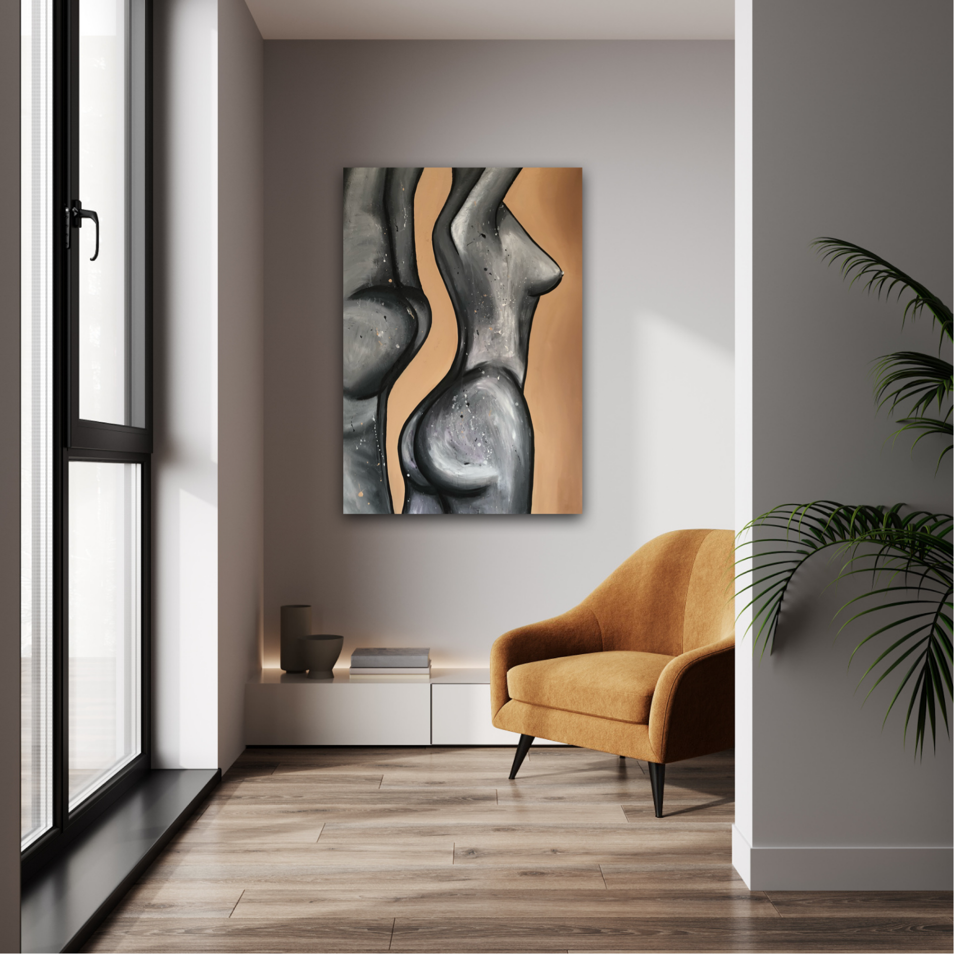 Manchmal im Leben, da passiert es, dass sich Menschen auseinander leben. Auseinander wachsen, jeder in seine eigene Richtung. In diesen Momenten kannst du sie fühlen. Die Leere, die Luft, die Stille zwischen euch. Dieses Kunstwerk soll genau solch einen Moment widerspiegeln. Einer der Beiden trägt größere Narben davon. Doch für beide öffnen sich die Türen für neue Abenteuer, neue Menschen, neue Erfahrungen und neues Wachstum."