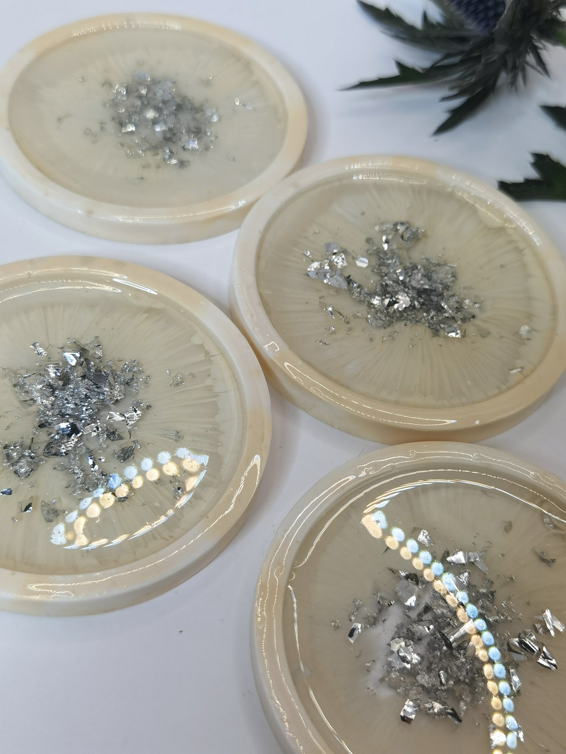 4er Set Untersetzer in hellem beige/silber