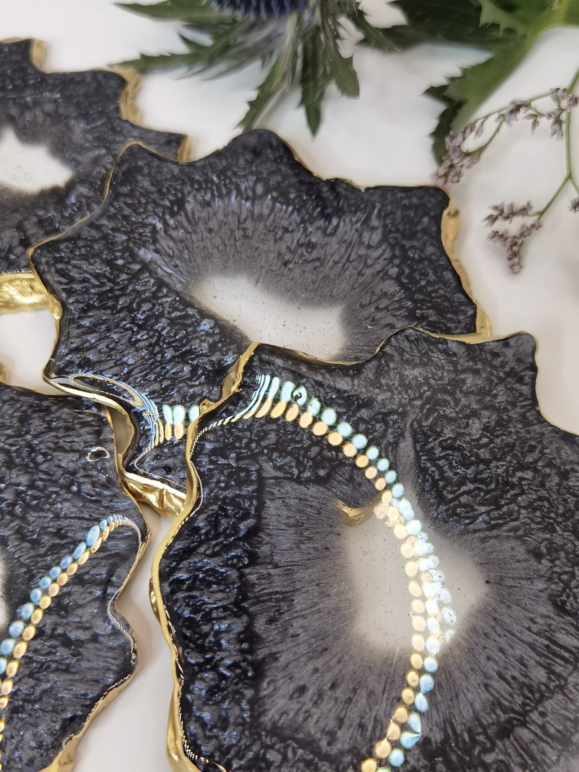 4er Set hitzebeständige Untersetzer in dunkelgrau/gold